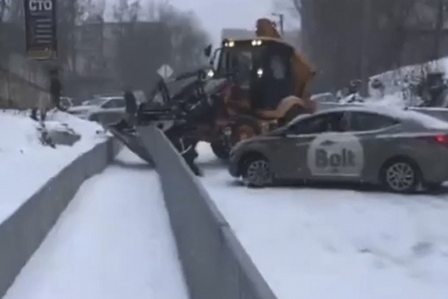Известно, что водитель трактора не справился с управлением и въехал в ограждение. В инциденте никто не пострадал. Проезд там перекрыт. Будьте осторожны на дорогах.