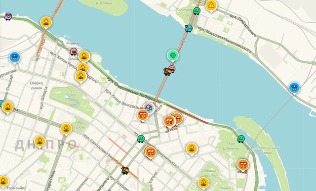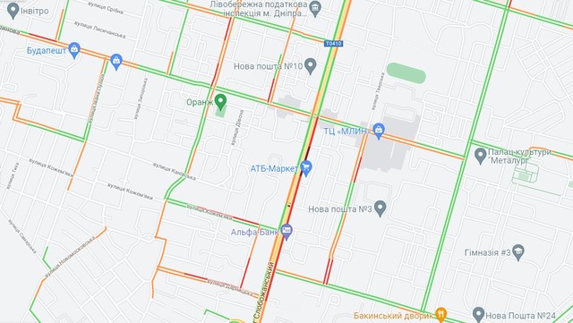 Водителям стоит быть внимательными за рулем. Если вы читаете эту статью до начала движения, то пересмотрите свой маршрут, чтобы не убить время в заторах — сообщают служба Waze и Google-пробки.Правый берег. Наибольшие затруднения наблюдаются в районе центра. Практически полностью стоит движение на улицах Европейская, Глинки, Юлиуша Словацкого, Михаила Грушевского, Сечевых Стрельцов, Шевченко, проспекте Яворницкого, и на Сичеславской Набережной в районе Нового моста, въезд на мост. Сильно Затруднено движение на Андрея Фабра, Магдебургского Права, Шалом-Алейхема, Владимира Великого, Михаила Коцюбинского.