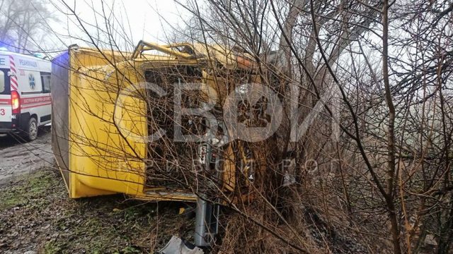 В Кривом Роге грузовик снёс остановку и перевернулся
