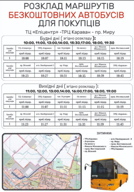 В Днепре восстановили бесплатный автобусный маршрут для покупателей «Эпицентр – Караван — пр. Мира».