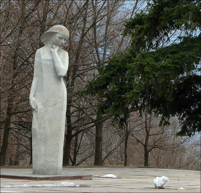 Среди этих памятников – знаменитая «Скорбящая» возле Дворца студентов ДНУ в парке Шевченко, скульптурные композиции погибшим в годы Второй Мировой войны медикам, водителям, подпольщикам, расстрелянным пленным. Военная тематика была доминирующей в творчестве нашей землячки.