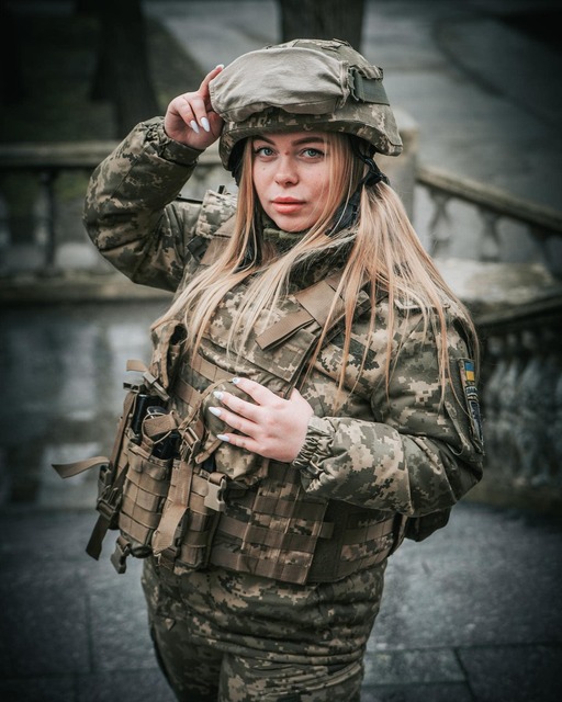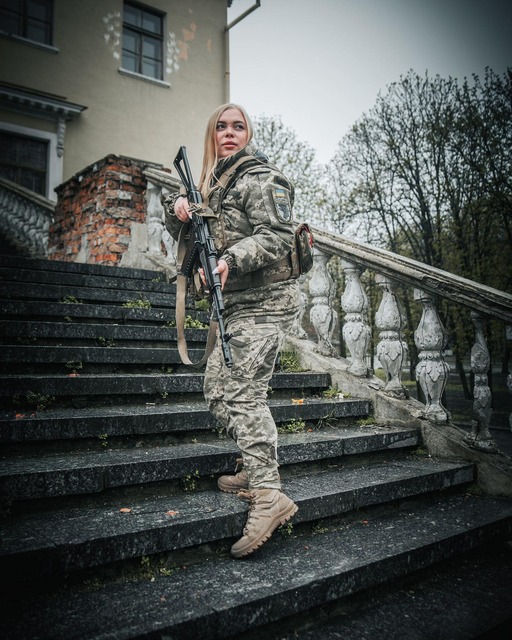 «В рамках свого фотоциклу #зі_зброєю_та_без сьогодні знайомлю вас з дніпрянкою Ксенією, військослужбовицею 93 ОМБр Холодний Яр.⠀