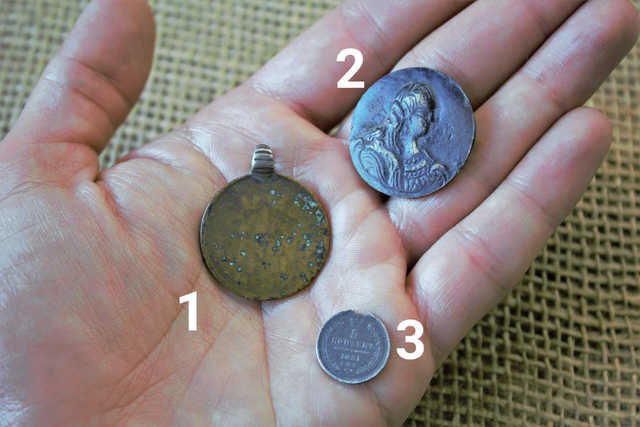«1. Ця підвіска була знайдена нами більше 20 років тому на стежці на городі по вул. Шлюзова (двір, звідки, до речі, й гарда, раніше там мешкала одна з гілок роду Нечипоренків).2. Цю знахідку багато років тому передав нам С. Ватченко. Дукач був знайдений його родичем під час риття окопів у 2 Світову війну.
