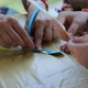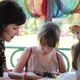 «Я тут із мамою та братом. Відвідала вже багато майстер-класів й зробила віяло, метелика і котика. Ще малювала, ліпила і брала участь в іграх. Тут дуже цікаво», — ділиться враженнями дівчинка.