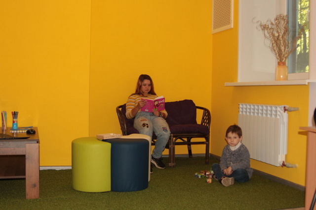 Современная локация предназначена для проведения различных учебных, информационных, социальных мероприятий, консультаций, лекций, семинаров. Здесь есть компьютеры, ноутбук, принтер, сканер, интернет, детский уголок для отдыха и развлечений маленьких посетителей. А также обустроена зона для проведения презентаций, просмотра фильмов с помощью современного проектора.