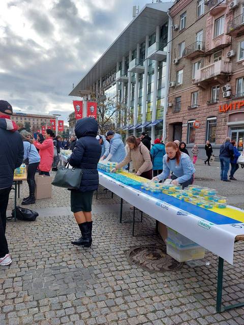 В Днепре на Европейской площади из 5000 сине-желтых роллов собрали флаг Украины