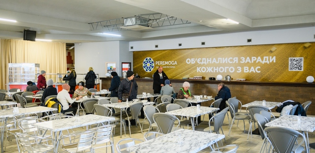 В Днепре работает социальный ресторан PEREMOGA. Его открыли местные волонтеры. Там могут бесплатно пообедать переселенцы. Ежедневно наведываются до полутысячи взрослых и детей.