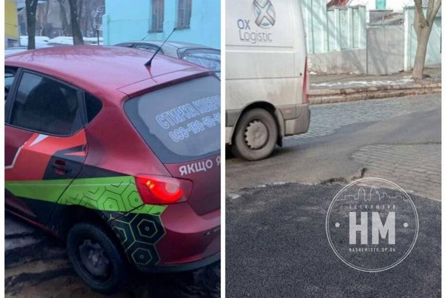 Сегодня, 2 февраля, на улице Михаила Грушевского в Днепре прямо посреди проезжей части появилась яма большого размера, в которую попал автомобиль.