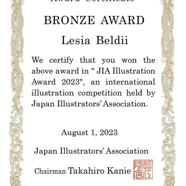 «Я - серед бронзових призерів Японської ассоціації ілюстраторів.