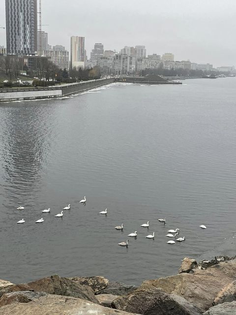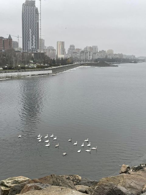 У Дніпрі спостерігається значне збільшення кількості лебедів. Раніше їх можна було помітити у парах, а тепер вони з’явилися цілими родинами або навіть зграями.