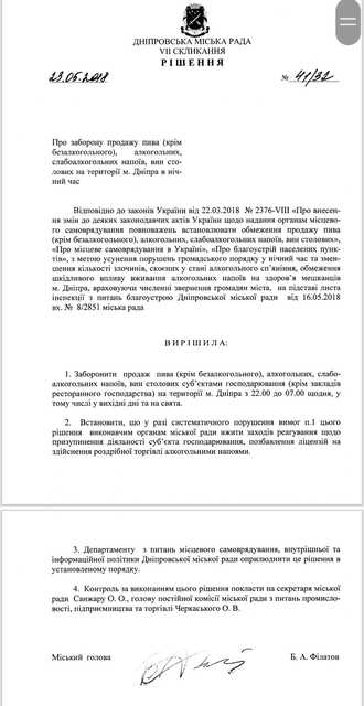 Перший проект рішення стосується скорочення часу заборони на продаж алкоголю (раніше з 22-00 по 07-00). Планується скоротити заборону до комендантської години (з 24-00 по 05-00). Цікаво кому це актуально…».