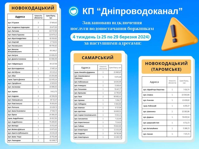 С 25 по 29 марта специализированная бригада по отключению будет работать в частном секторе Новокодацкого и Самарского районов Днепра.