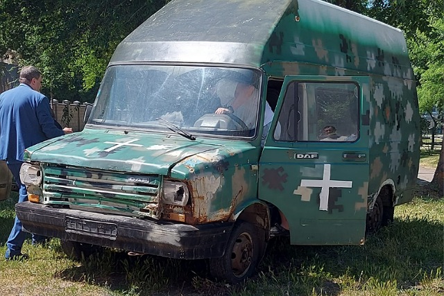 Этот экспонат музею передали давние друзья из Третьей штурмовой бригады. Автобус ДАФ на передовой выполнял функции эвакуатора раненных. И сам прошел через тяжелейшие повреждения и ранения.
