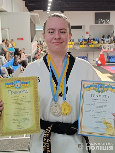 Оперуполномоченная сектора криминальной полиции отделения полиции №1 Криворожского районного управления полиции Анастасия Матросова завоевала золотую и серебряную медали на открытом Чемпионате Днепропетровской области по тхэквондо.