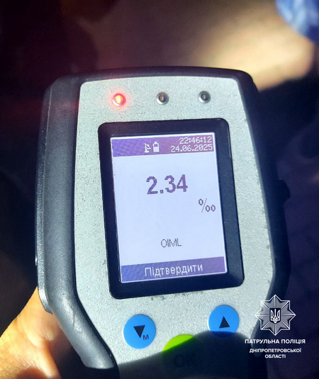 Один из них у водителя автомобиля ЗАЗ, которого патрульные остановили на Донецком шоссе за нарушение ПДД. У мужчины заметили признаки алкогольного опьянения. Он прошел освидетельствование с помощью Драгера. Результат - 2,34 промилле в крови водителя. На него был составлен протокол.