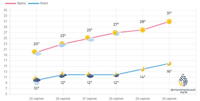 «Прогноз погоди на тиждень по Дніпропетровщині.