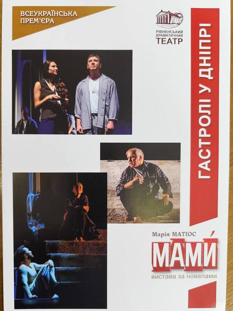 Дніпровські глядачі зможуть побачити виставу «Мами» на сцені «Драмікому». Завдяки співпраці Дніпропетровської та Рівненської обласних рад, за підтримки ОВА та міської влади Дніпра колектив Рівненського драматичного театру виступить у Дніпрі у листопаді.
