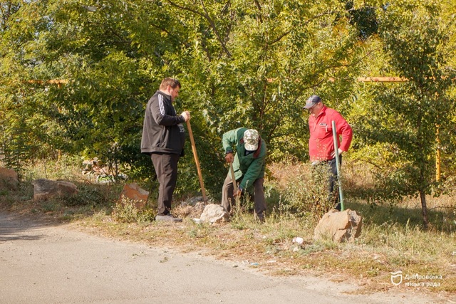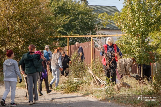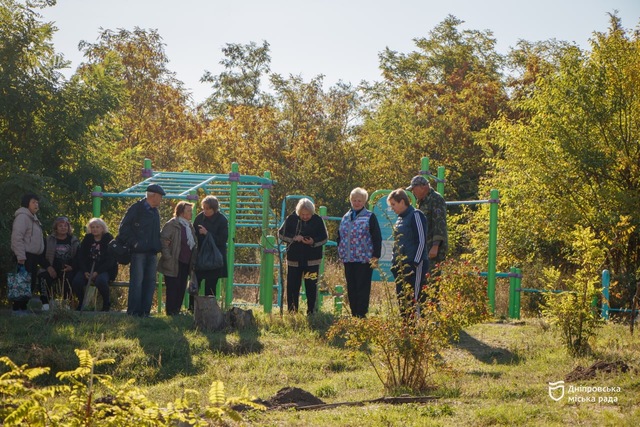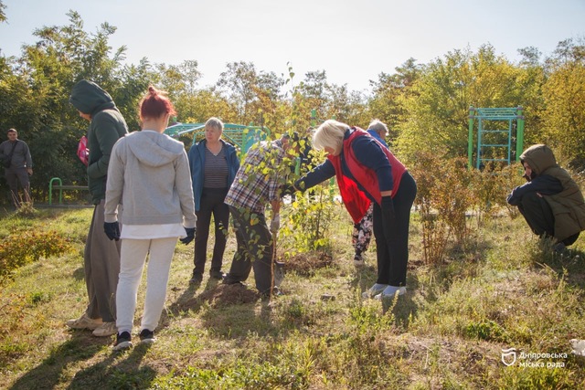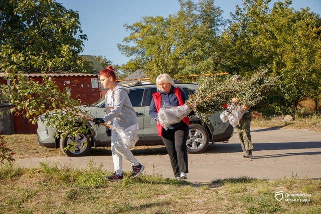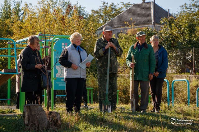 Так, в Новокодацком районе на улице Трифона Гладченко местные жители собрались, чтобы убрать территорию возле детской площадки и высадить новые зеленые насаждения.