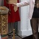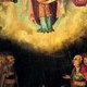 К самому уху Богоматери идет надпись: "Молимся, покрой нас честным твоим покровом избави от всякого зла". Надпись надо читать с конца от низа кверху. Вторая надпись: "Избавлю и покрыю люди моя".