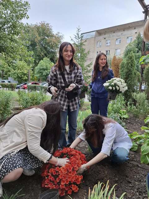 Уже не первый раз в Днепропетровской областной больнице имени Мечникова в октябре высаживают красивые кусты хризантем.