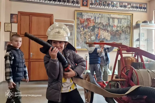 Многие школьники в шутку пытались представить себя в роли пожарных, делясь впечатлениями между собой. Экскурсовод объяснил, почему снаряжение такое тяжелое, зачем нужны специальные аппараты для дыхания и как работают современные системы пожаротушения.
