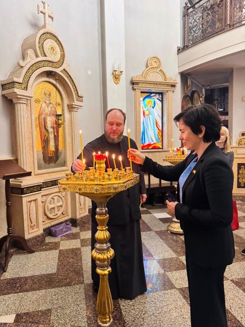 Після цього делегація відвідала храм, де поставили свічки та помолилися».