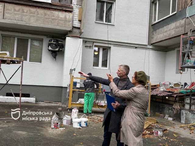 В ЖСК № 88 работы уже завершены на 60%. Их выполнение проверил директор департамента по вопросам самоорганизации населения Днепровского городского совета Святослав Ткаченко.
