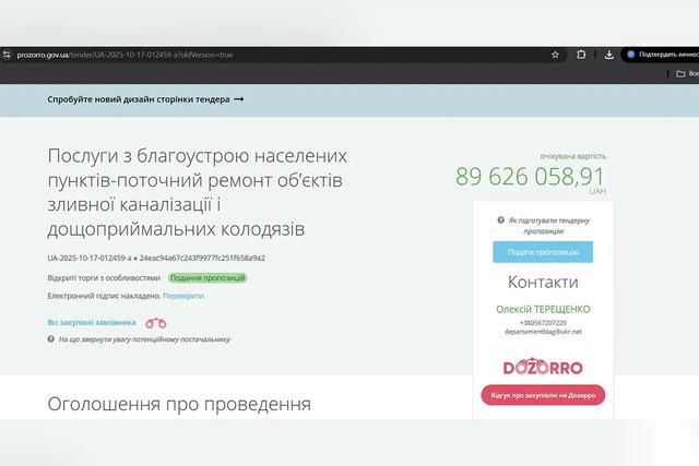 Работы планируют выполнить до 31 декабря 2025 года, хотя тендер объявили 17 октября, а победителя выберут лишь 27 числа. Об этом говорится в тендерной документации на Prozorro.