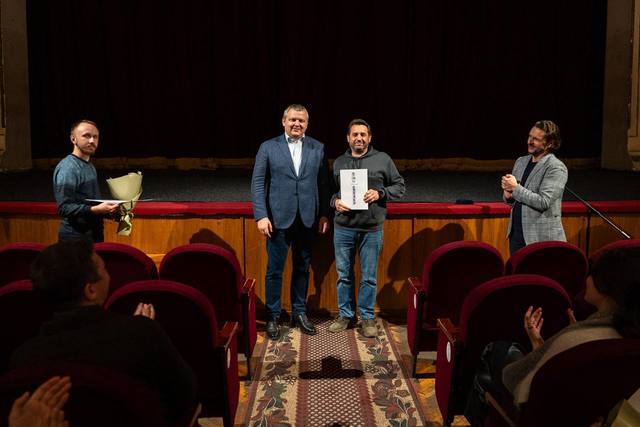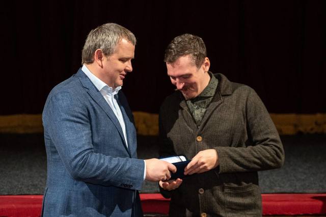 Глава Днепропетровского облсовета Николай Лукашук отметил руководителя театра Сергея Мазаного и коллектив за преданность делу и развитие культуры даже во время войны.