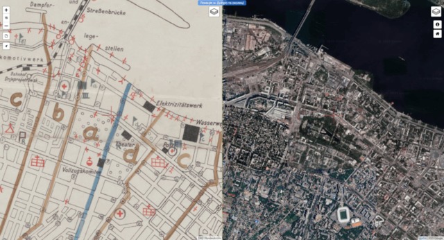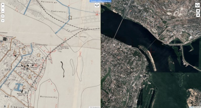 Посмотреть на карту и сравнить ее с современным видом Днепра можно здесь.