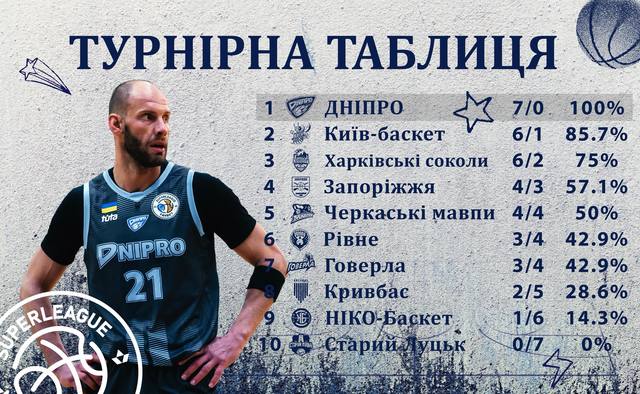 Киев-Баскет, проиграв Соколам, опустился на вторую строчку. Соколы с шестью победами в восьми матчах идут третьими. Замыкает таблицу пока не побеждавший Луцк.