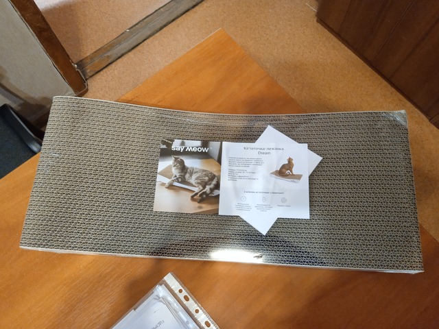 Ця новина їх дуже розчулила і Єлизавета вирішила від імені компанії подарувати нашим котикам дві кігтеточки.
