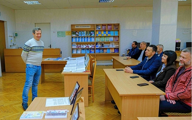 Гість представив марки та конверти, присвячені героям і подіям козацької доби, а також розповів, як через дизайн поштових марок можна простежити історію, культуру та мистецтво України.