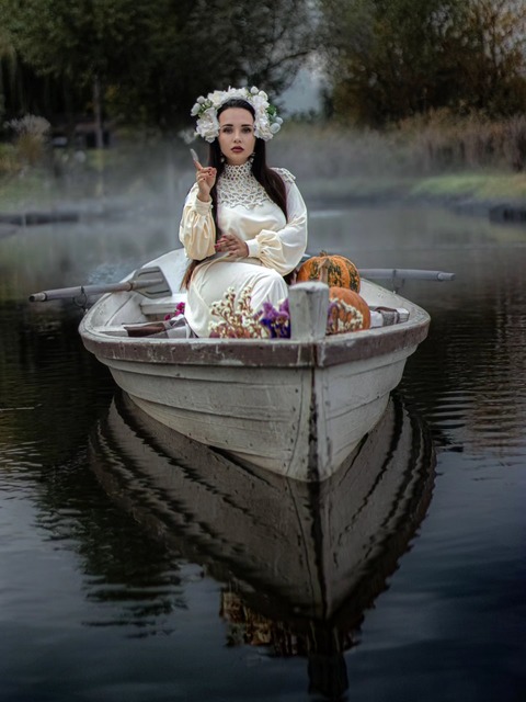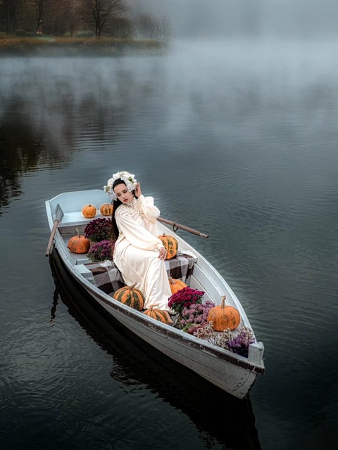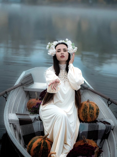 Как отмечает Анастасия, эта фотосессия посвящена празднику Самайна, который позже стал именоваться Велесовой ночью и Хэллоуином.