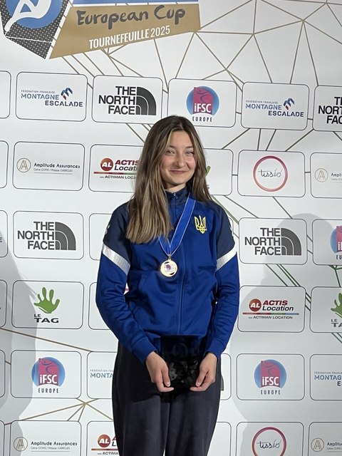 В финальном этапе Кубка Европы по скалолазанию в олимпийской дисциплине трудность в возрастной категории U17 победу и золотую медаль одержала спортсменка Днепропетровской ОШВСМ Рафаэль Казбекова.
