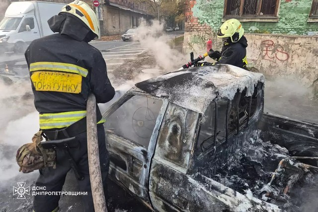 В Днепре пожарные потушили горящий автомобиль на улице Яхненковской