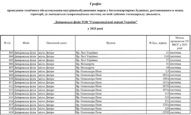 В ноябре «Газсети» обследует внутридомовые системы газоснабжения в 63 многоквартирных домах Днепра.