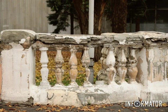 Забор установили с обеих сторон колонн - со стороны проспекта Дмитрия Яворницкого и уже на территории парка. За забором можно увидеть знакомые многим горожанам музыкальные инструменты, которые неоднократно страдали от рук вандалов.
