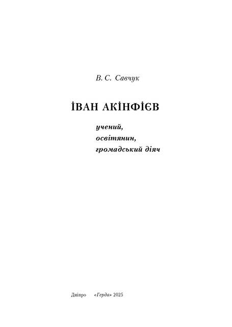 «Нарешті завершено і підготовлено до друку у видавництві «Герда» мою книгу про старожила Катеринослава (Дніпра) Івана Яковича Акінфієва.Людину, яку часто називали «зеленим ангелом» міста, життя якого було невіддільне від наукового, освітянського і громадського розвитку Катеринослава (Дніпра) останньої чверті ХІХ – початку ХХ століття.