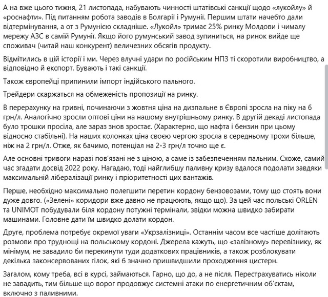 По словам специалиста, несмотря на российские удары по топливной инфраструктуре, Украине удавалось держаться на плаву благодаря разветвленной системе импорта.