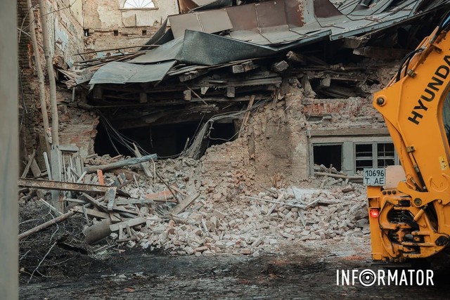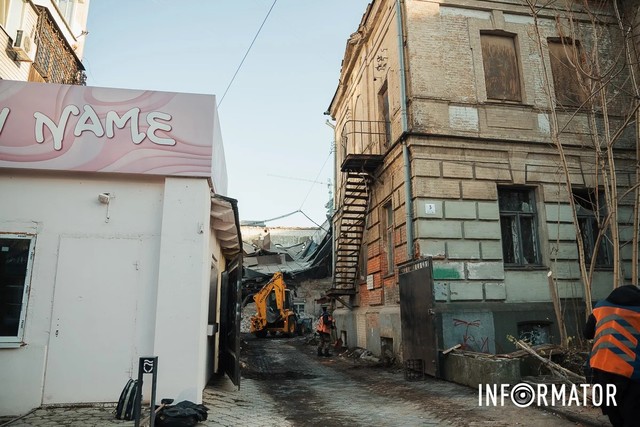 Из-за этого заезд на улицу со стороны проспекта Дмитрия Яворницкого перекрыла полиция. По состоянию на 14:34, шла ликвидация последствий обвала крыши. Здание находится в историческом центре города.