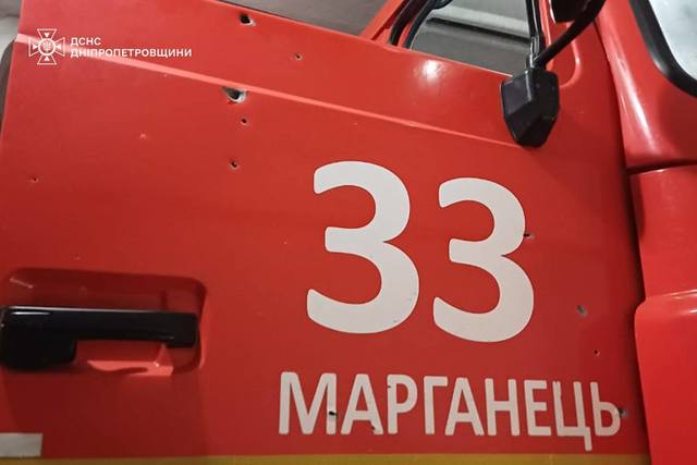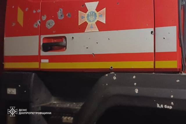 Пошкоджено пожежно-рятувальний автомобіль. На щастя, співробітники ДСНС не постраждали — вони встигли перейти до укриття.