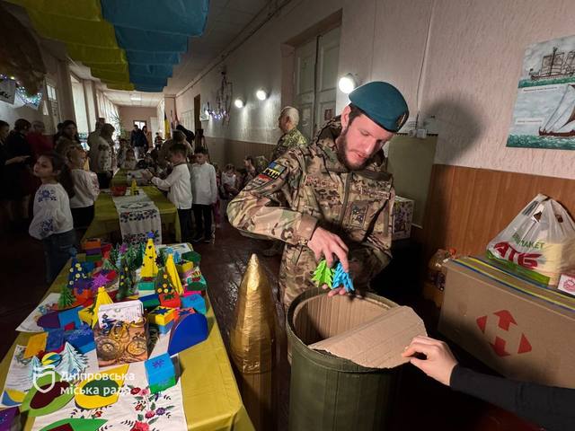 «Сьогодні у філії Міського палацу дітей та молоді на вул. Великій Діївській вихованці ранніх груп разом із батьками, педагогами створили поробки для військових. Завітали представники управління ветеранської політики, військові, які особисто прийняли ці роботи й передадуть захисникам. Акція приурочена також і до новорічних свят. Діти виготовили і тематичні ялинки, і патріотичні речі — сердечка, прапорці, символічні прикраси. Дуже важливо, що батьки підтримують дітей у цій ініціативі – виходить справжня синергія. Ми допомагаємо виховувати малечу в патріотичному руслі. Усі ці подарунки потраплять на передову разом із зібраними для військових речами», — сказав в. о. директора департаменту молодіжної політики, української національної та громадянської ідентичності Дніпровської міської ради Сергій Луденський.