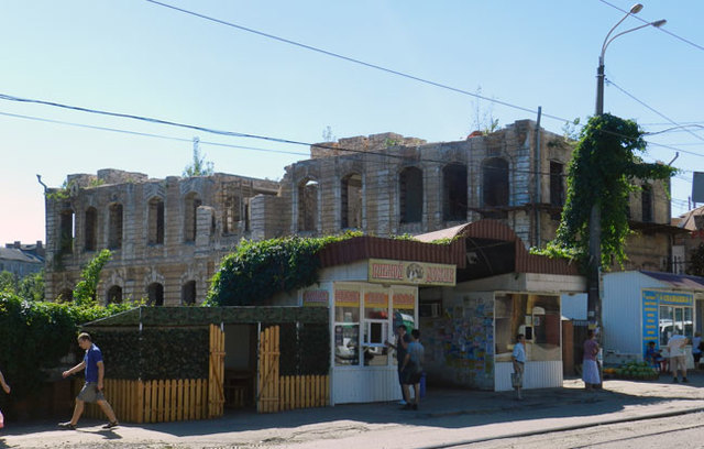 Напівзруйнований каркас цього чудового 2-поверхового будинку дивом вцілів до нашого часу у районі перехрестя вулиці Львівської (до цього – Леваневського та Керосінна) та проспекту Нігояна (раніше – пр. Калініна та Перша Чечелівська).