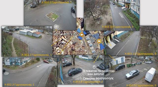 1. Вул. Гідропаркова, буд.1 – встановлений 1 вузол відеоспостереження на 3 оглядові камери;