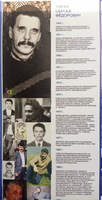 А ще не стало нашого друга , однокурсника, колеги - Сергія Федоровича Тарана, архітектора, відомого в Дніпрі багатьма будівлями з медичної сфери і не тільки. Він був професіоналом, який намагався в кожну роботу внести частку своєї душі. Багато працював з молоддю: спочатку в рідній Академії, яку закінчив в далекому 1971 році (ще ДІС - перший випуск архітекторів), потім в Одеській академії будівництва та архітектури. Він будучи доцентом і одночасно великим практиком давав їм путь в архітектуру, керуючи їх дипломами...