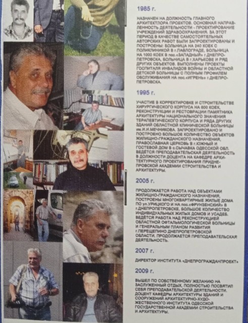 На фото - перша сторінка в буклеті, який зробив Сергій у 2016 році, в якому коротко викладена біографія, головні етапи його творчості в якості архітектора і викладача, що проілюстровані багатьма фото реалізованих проектів та талановитих пропозицій. Пишаймося тобою, Сергій! Спи спокійно!».