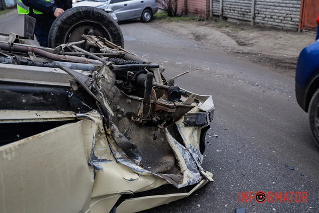 У Дніпрі на Незламній Niva зіткнулась з Daewoo та перекинулась на дах: є постраждала