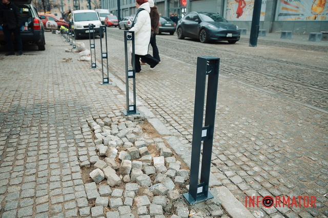 Таким чином у Дніпрі хочуть боротися зі стихійним паркуванням. Наразі антипаркувальні стовпчики встановлюють до будинку №6 по вулиці Центральній.