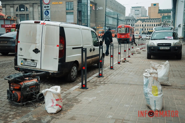 У Дніпрі на вулиці Центральній розпочалися роботи із встановлення антипаркувальних стовпчиків.